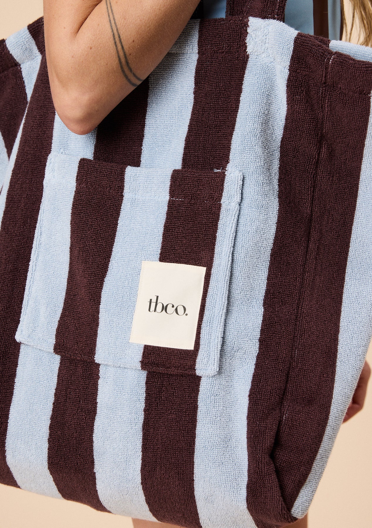 Terry Cotton Tote Bag Blue Stripe
