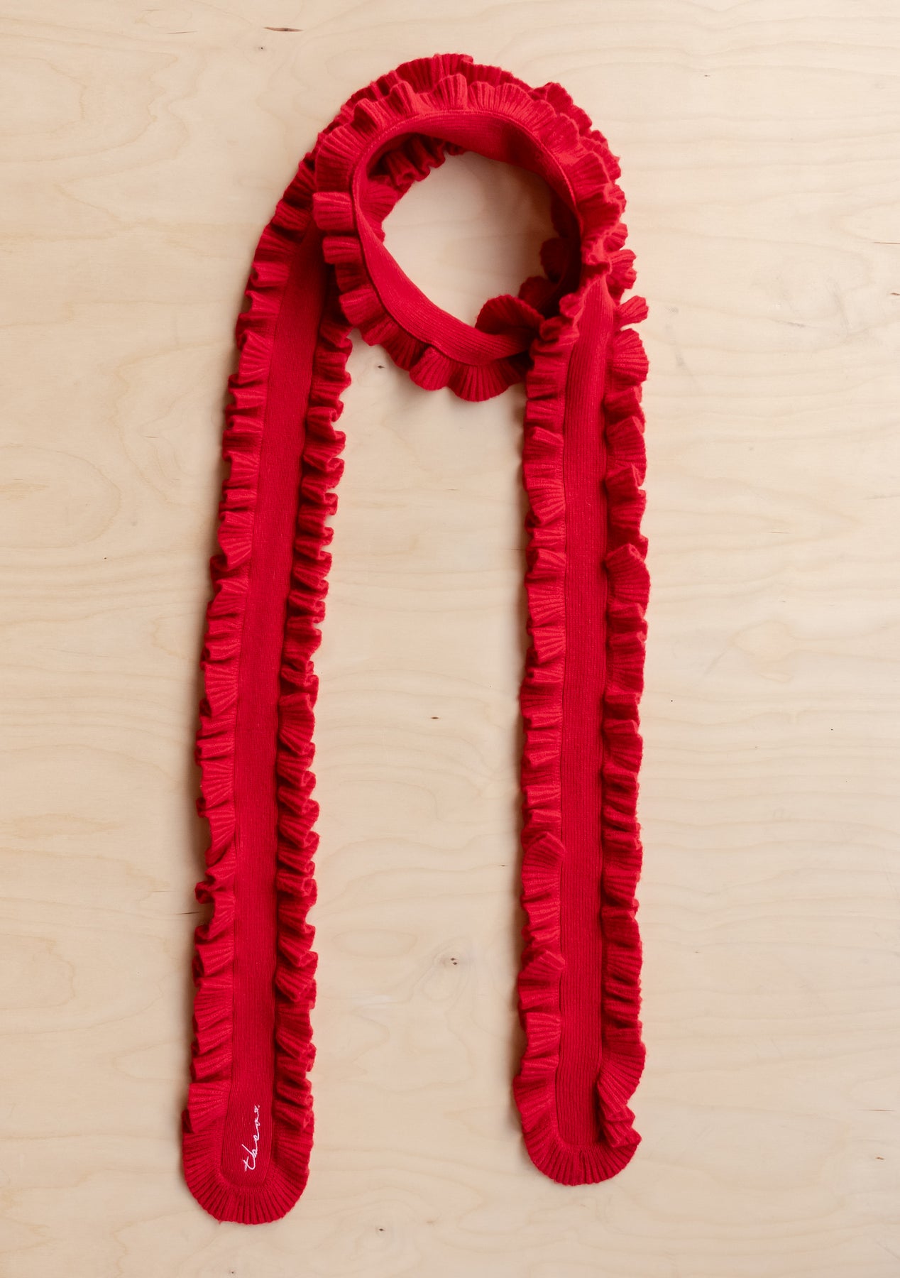 Meet your hardest working accessory. This season, our signature skinny scarf is reimagined with a playful ruffled trim. This 100% merino wool style in striking red adds warmth, texture, and interest in one simple layer, helping familiar outfits feel fresh without the need for a full wardrobe reset.
