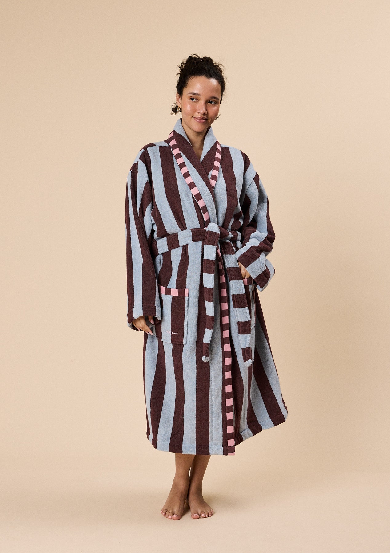 The fit and material of this dressing gown is gorgeous. I had been waiting for the pink colour way to come back into stock, but ended up buying the new honeycomb colour as soon as I saw it. I’m a UK size 16 and the XL/2XL is perfectly oversized.