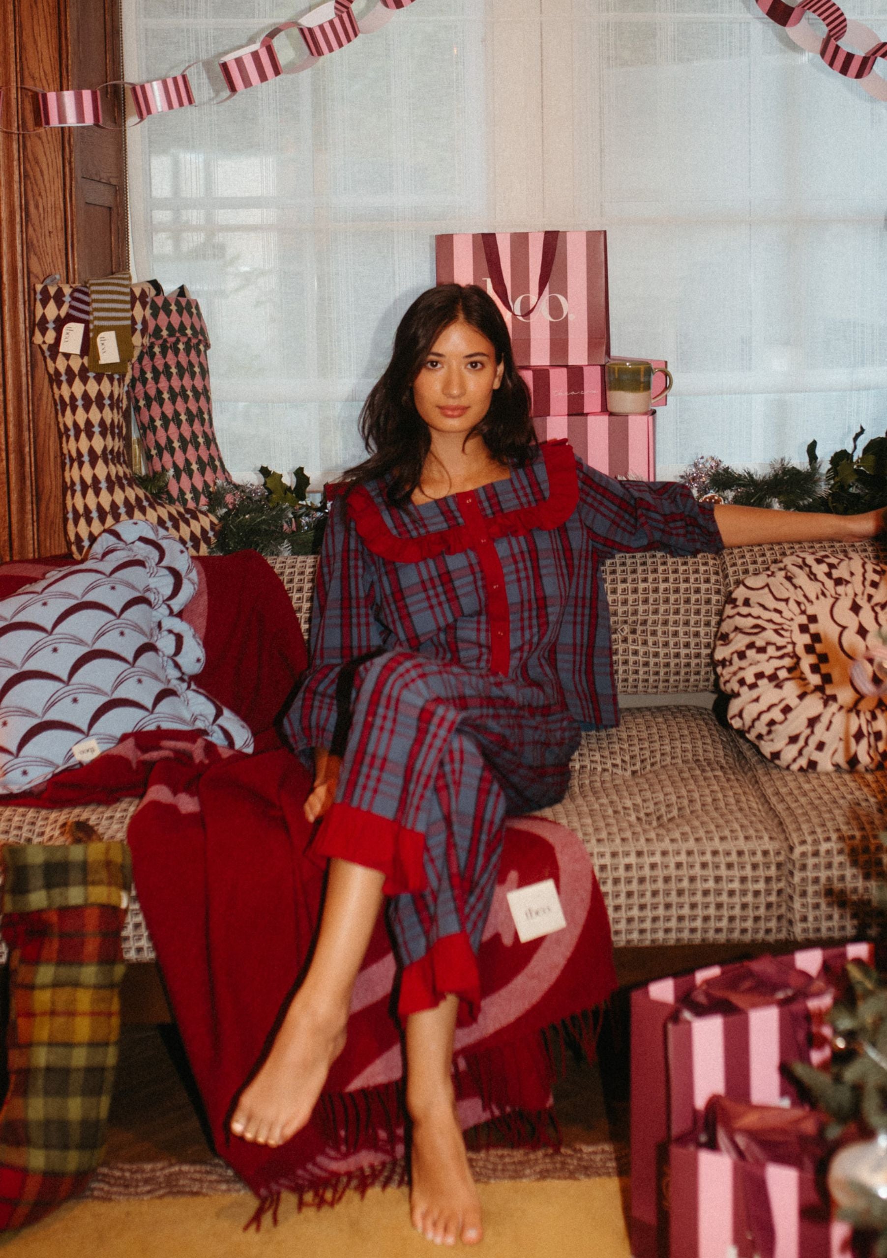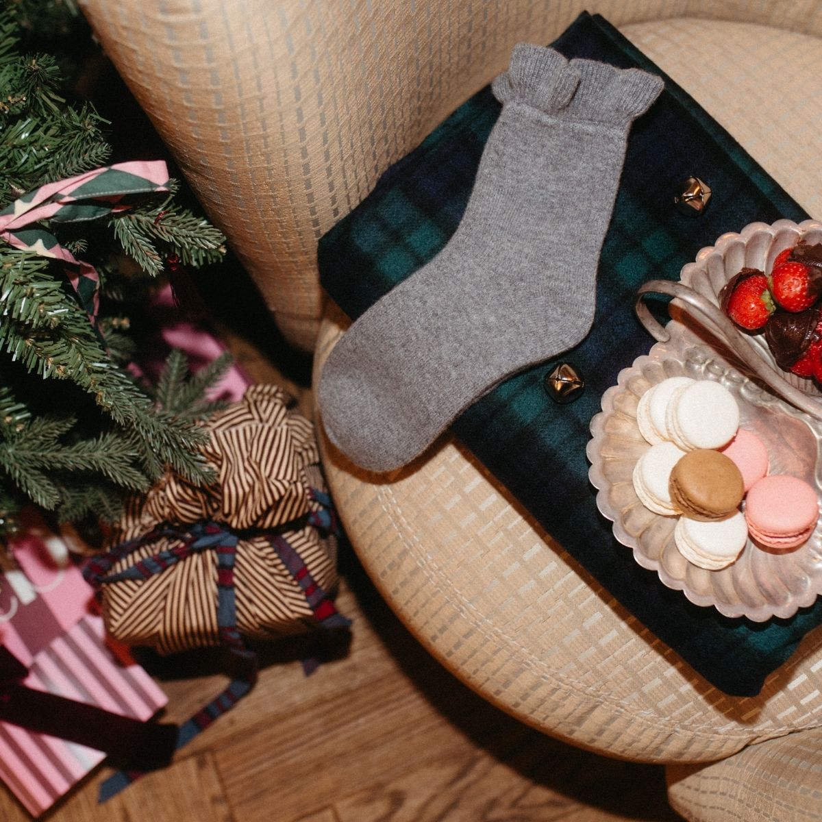 Bereiten Sie Ihr Zuhause mit Decken, Kissen und Strümpfen auf das Feiern vor.