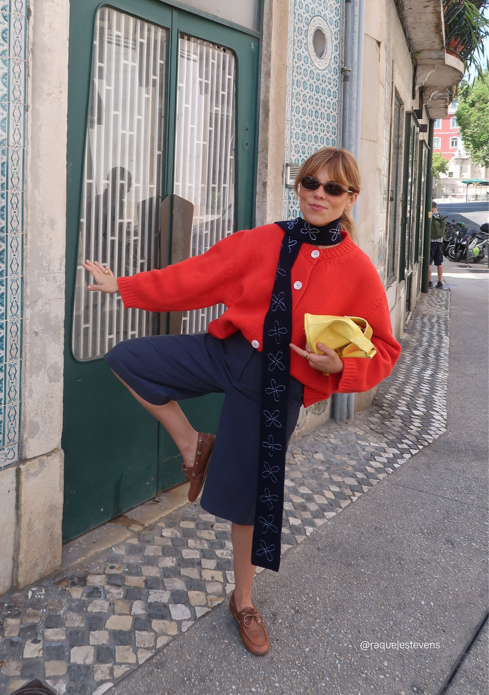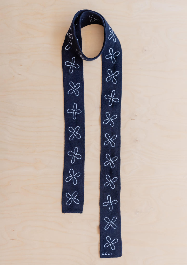 En cette saison où les superpositions sont omniprésentes, les plus petites pièces peuvent faire une entrée remarquée. Inspirée du style vintage et confectionnée en laine mérinos douce comme du beurre, cette écharpe fine TBCo bleu marine à motif floral bleu clair revisite la tradition avec humour. Légère et respirante, elle est parfaite pour les changements de saison : le genre d'écharpe qu'on oublie jusqu'à ce qu'on nous la complimente.