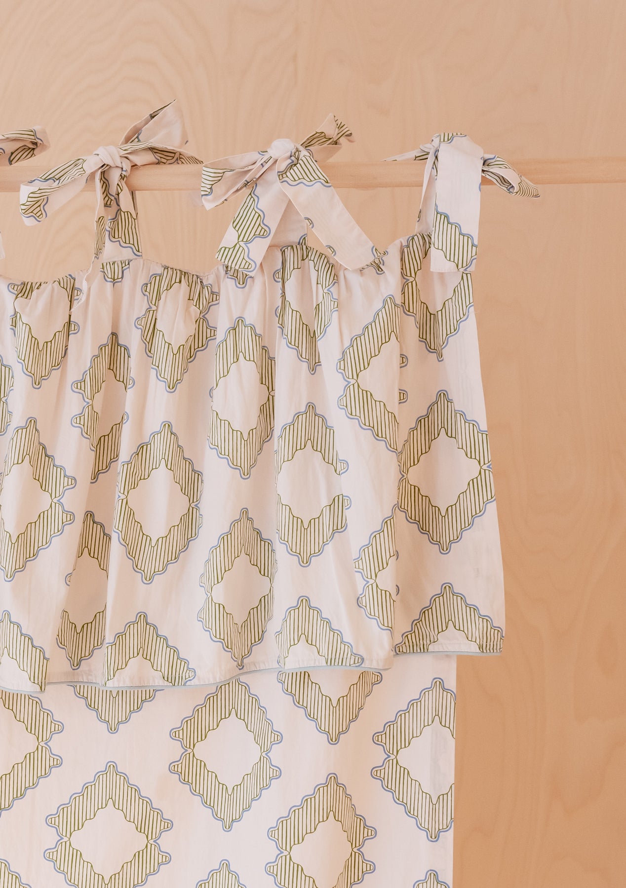 Pair of Cotton Tie-Top Curtains in Green Diamond by TBCo, featuring soft cotton fabric and subtle green diamond print details