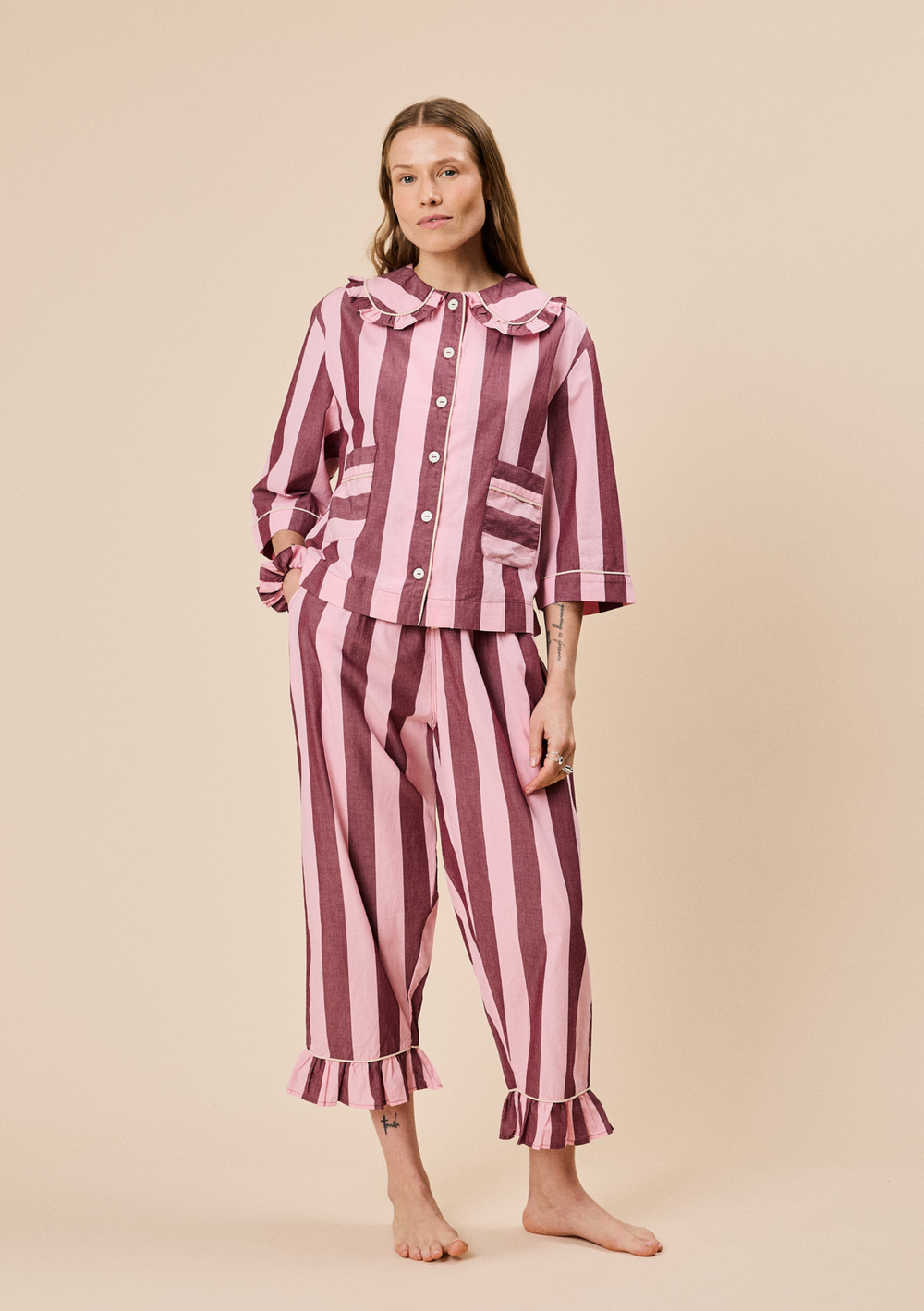 Nos vêtements de nuit de luxe sont conçus pour estomper les frontières entre le sommeil, la détente et les matins tranquilles. Conçus pour le confort, la confiance en soi et la décontraction.