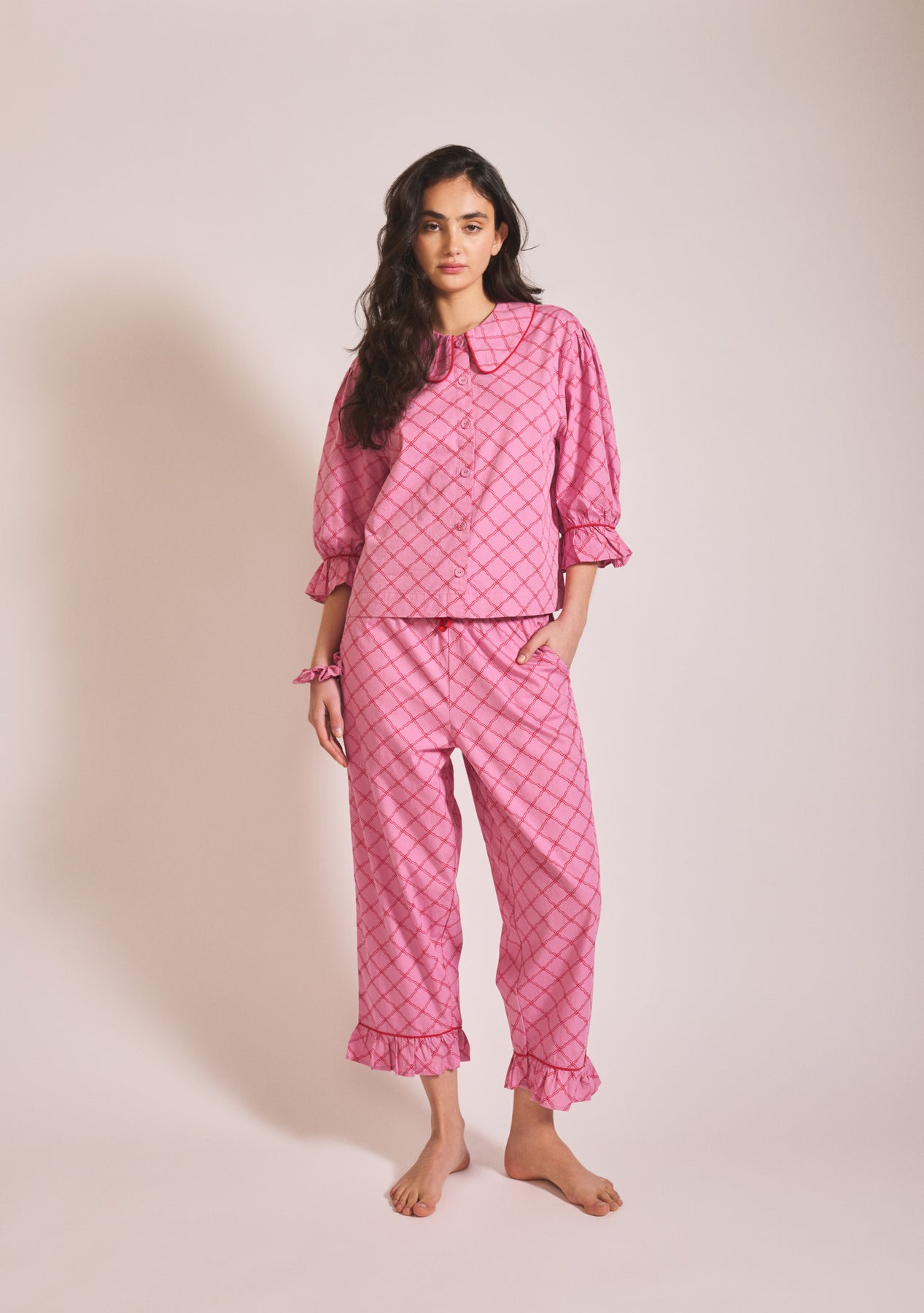 Pyjama court en coton Treillis rose