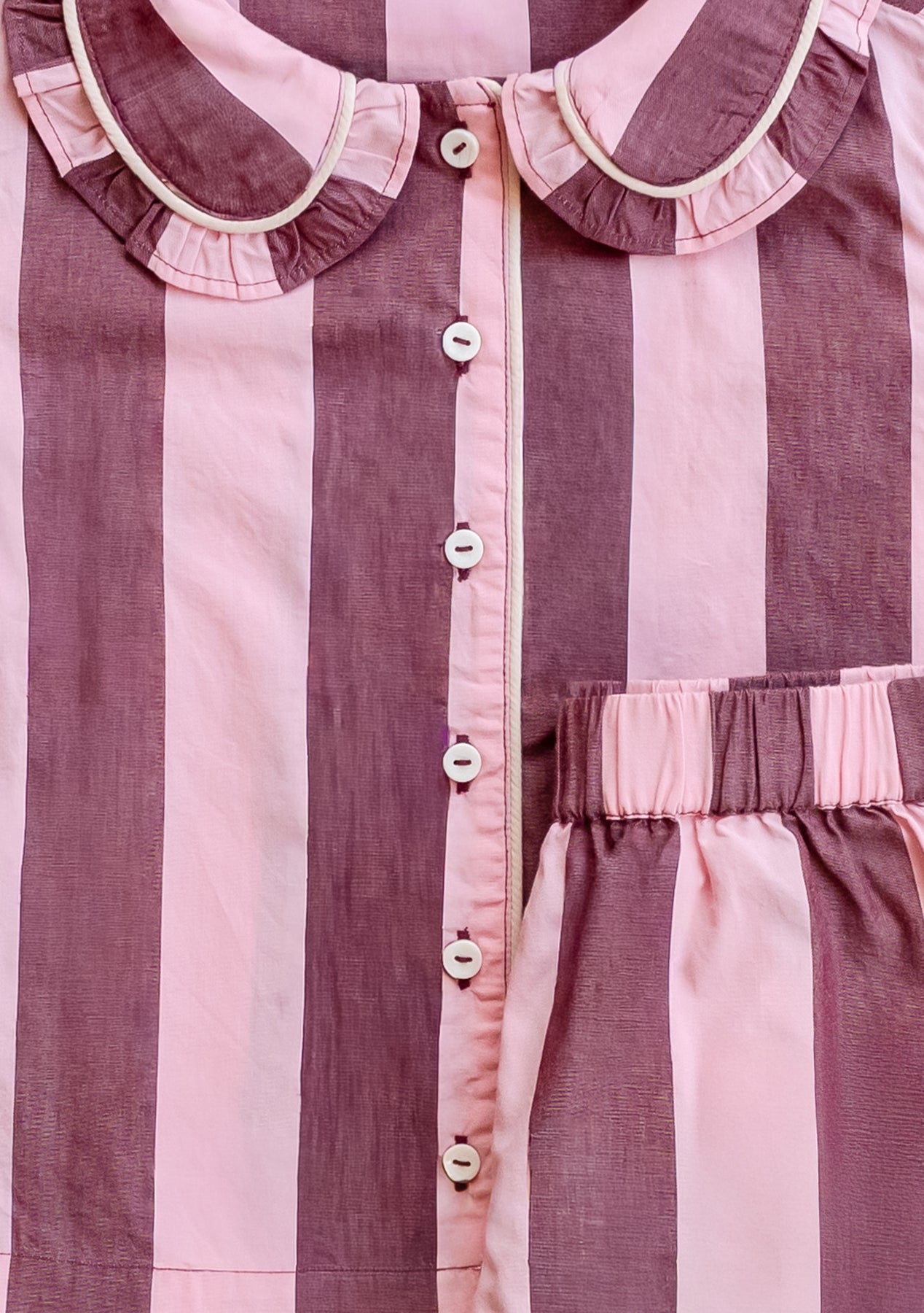 Cotton Kids Pajamas Pink & Burgundy Stripe