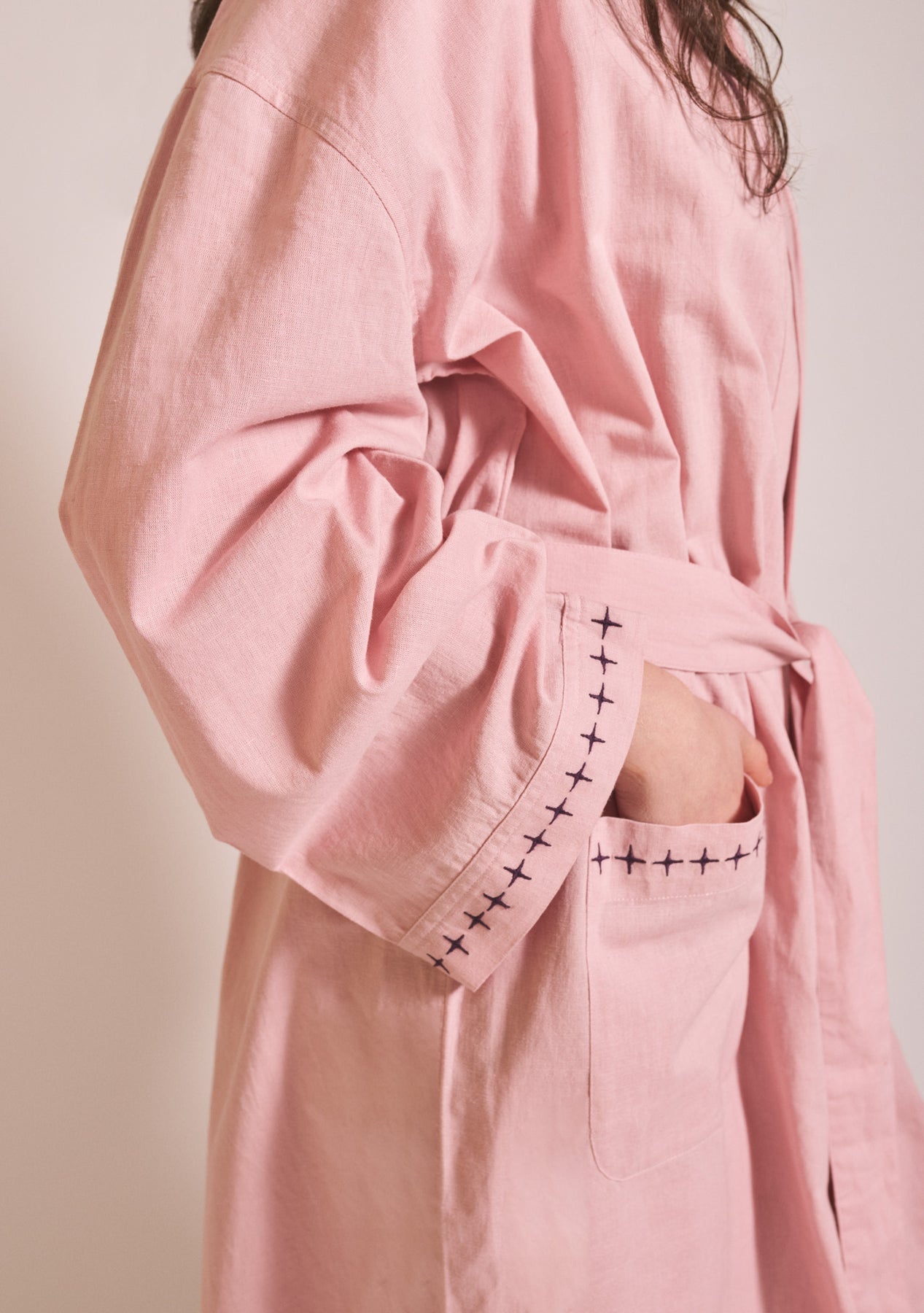 Made from a cotton and linen blend, this pink robe with blackberry embroidery is comfortable and breathable. The sewn-in robe tie ensures it will never get lost. With a relaxed fit, it drapes effortlessly and can be worn over matching pyjamas or as a comfortable loungewear piece.